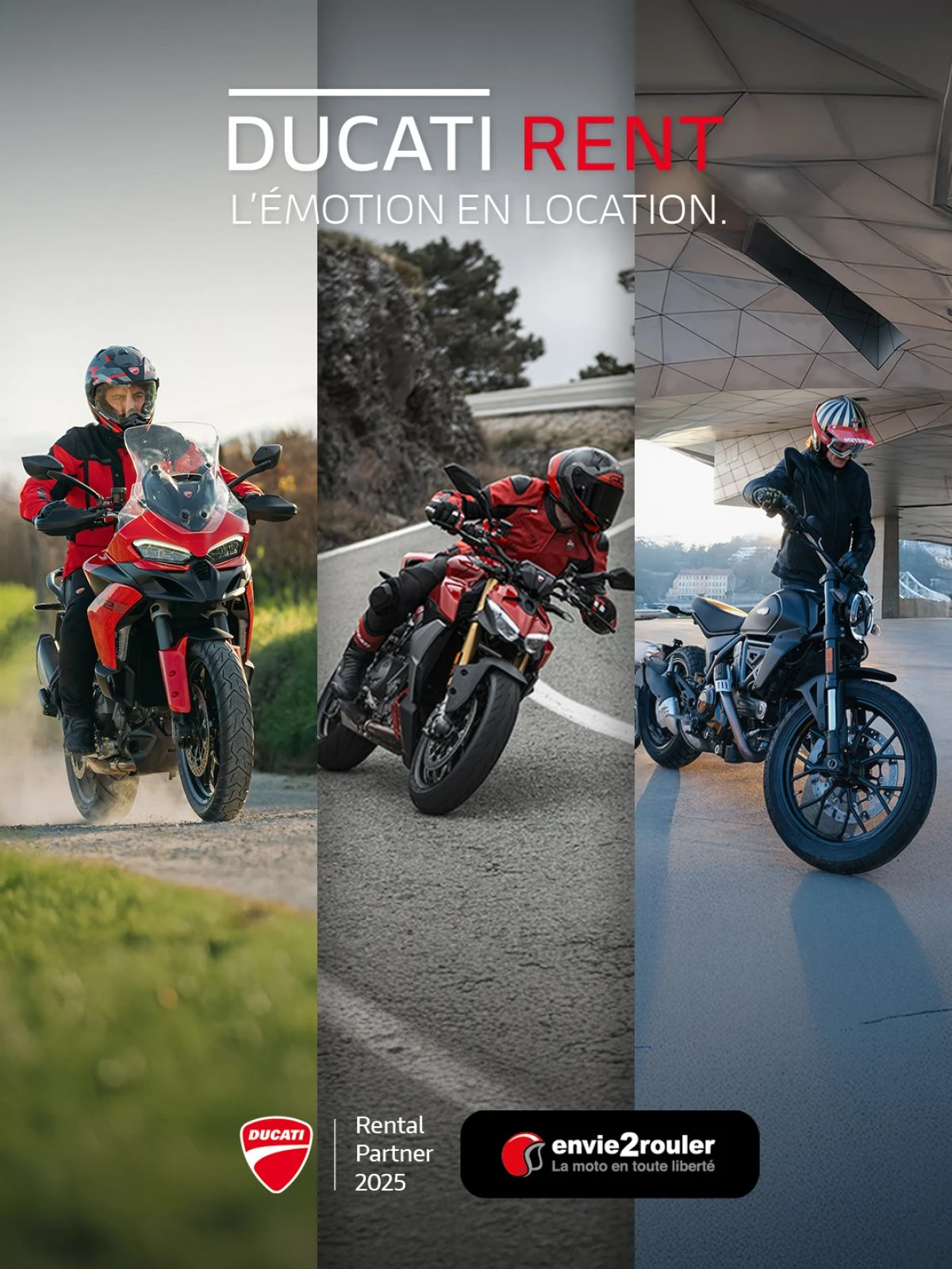 Découvrez Ducati Rent chez Ducati Annecy, l’émotion en location signée Ducati et Envie2Rouler. Scrambler Icon Dark, Multistrada V2/V4 ou Streetfighter V2 : offrez-vous un moment d’exception, entre voyage et échappée belle.